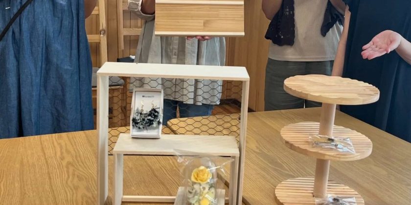 こまちカフェの一角にあるハンドメイドマルシェ「haco+」の棚を、haco担当スタッフと一緒に作っていただくという、DIY好きにはたまらない(?)リターンです。