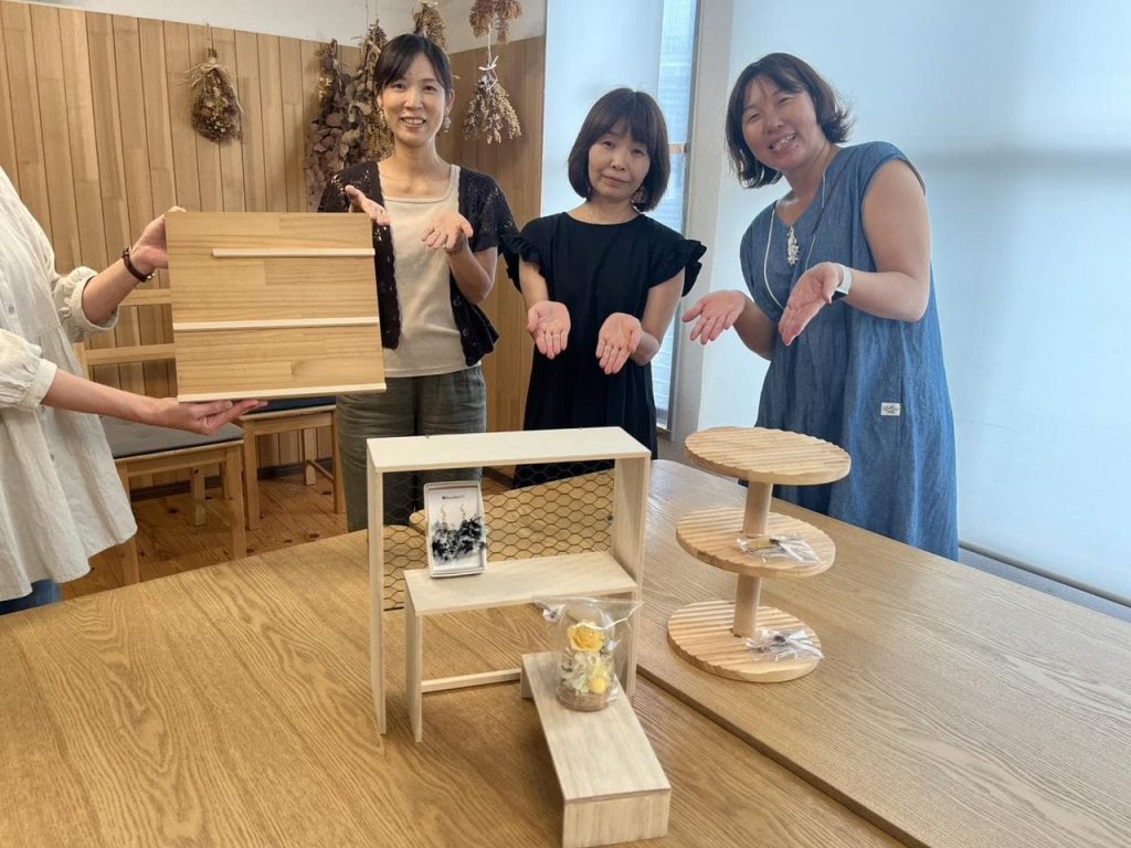普段は繊細な作品を作っている作家さんが、のこぎりやグルーガンを使いこなし、約2時間で3つの什器を完成!