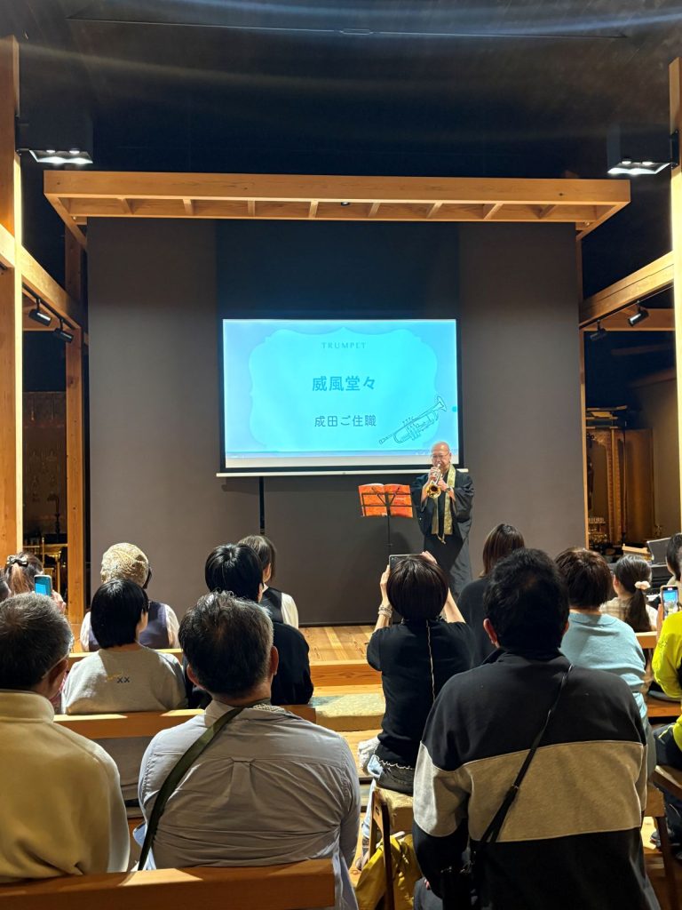 善了寺の本堂をお借りして開催したところ、成田ご住職がトランペット演奏をご披露くださり、普段と違うご住職のご趣味に、参加者のみなさんが「すごい!」と大変喜んでおられました。