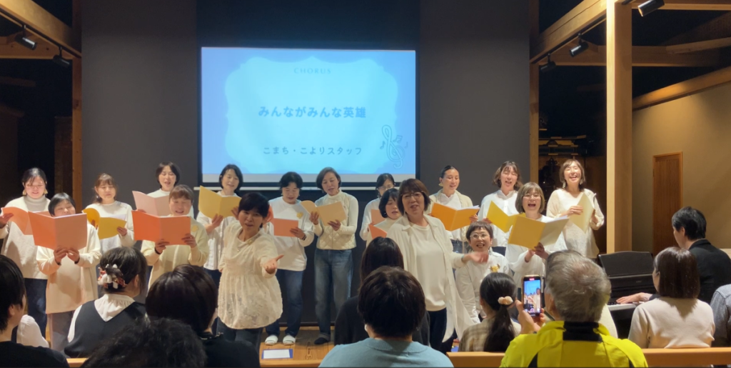 こまちぷらすの“中の人”の、笑ったり泣いたりの日常をみなさまと共有し、お客様に楽しんでいただくはずが、うっかりスタッフたちが感涙してしまい、その後に歌った合唱部は、あふれてくる涙と格闘しながら歌う、という思ってもいない展開になりました。戸塚の地域密着型シンガーソングライターのkaho*さんが作曲してくださった「こまちカフェ」のテーマソングを歌ったのですが、その歌詞にはこまちがぎゅっと凝縮されていて、自分たちでも歌うたびにきゅんとくる曲なので、みなさんに聞いていただきたいと思っています。