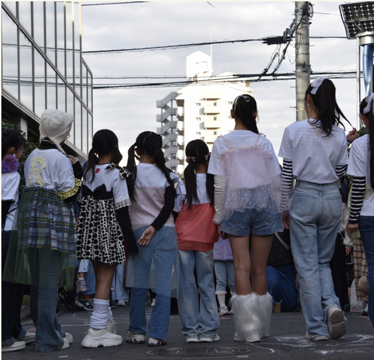 「こどもとおとなの学校」に参加していた子どもたちがデザインした洋服を着て、Harmonize Companyのアーティスト8名が道路でファッションショーを披露してくれました。
