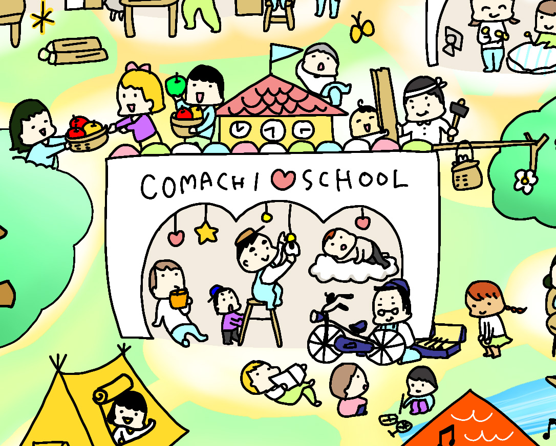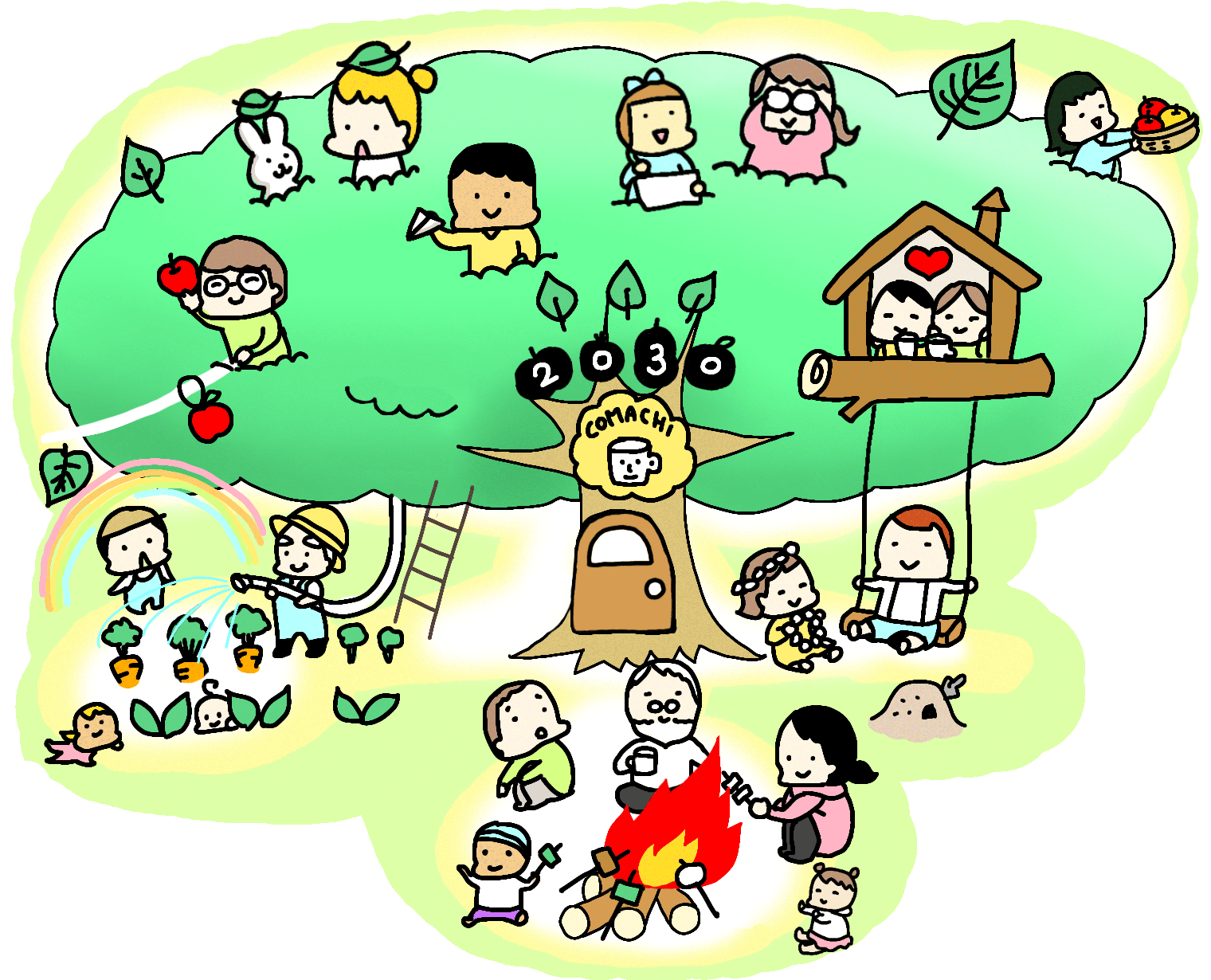 2025年は、絵の中央の大きな木の右にある「こまちスクール」構想の実現に向けて動き出します。