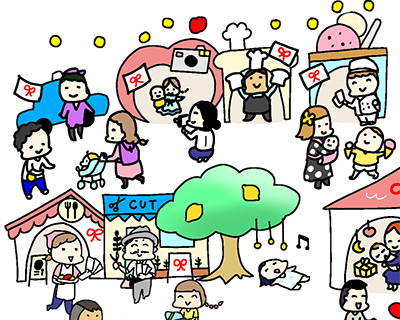 まち中で「赤ちゃんウェルカム!」な一日。プレゼントやイベントを用意して街のみんなが待っています。