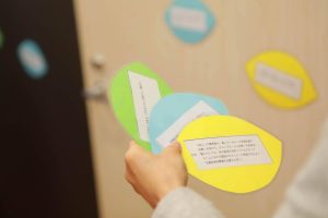 それぞれの事情のある方々も孤立することなく、まちの様々な人や場所とのつながりの中で思いを共有できるよう、多様な立場の方どうしが互いの思いを知る対話の場を大切にしています。「3枚の葉っぱ」のワークはその対話の手法の一つです。ご要望に応じて、市民の声を活かしたワークショップや研修を、行政や企業でも行っています。